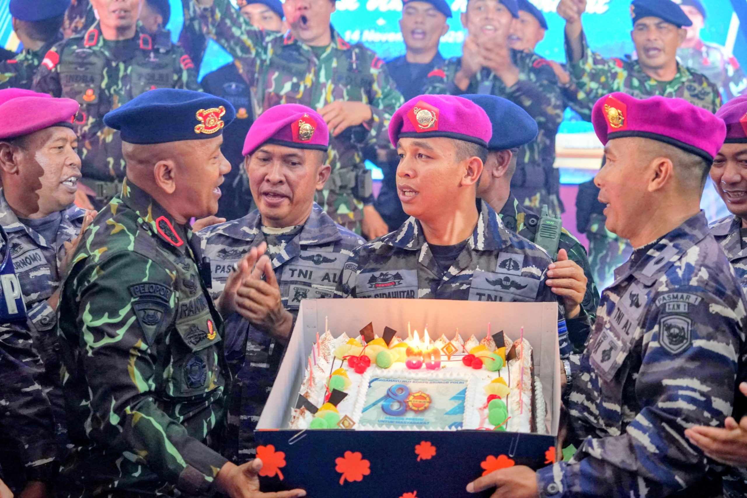 Kemeriahan acara semakin terasa saat sahabat-sahabat dari Korps Marinir hadir memberikan kejutan berupa kue ulang tahun untuk Brimob Polda Sumut. Momen ini semakin spesial karena Korps Marinir juga akan merayakan Hari Ulang Tahun mereka pada 15 November, sehingga tercipta suasana penuh keakraban dan soliditas antara TNI–Polri.